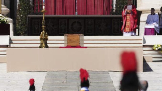 La messe d’enterrement sera présidée par l’Italien Giovanni Battista Re, doyen du Collège des cardinaux. Elle durera environ une heure et demie, avec la participation de 224 cardinaux et 750 évêques et prêtres. Le cercueil de bois et de zinc, scellé vendredi soir, sera déposé sur le parvis de la basilique, devant l’autel.