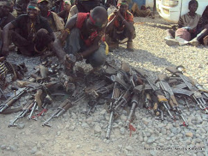 Ces miliciens ont déposé leurs armes : au total, 21 fusils de type AK-47 et aussi trois fusils de chasse de calibre 12, ainsi qu’une importante quantité d’arcs et flèches.
