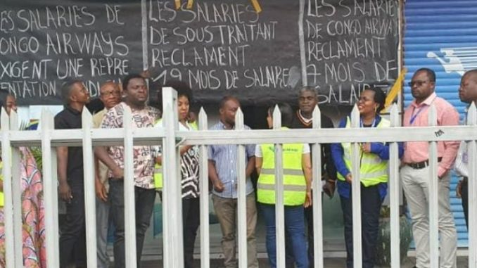 « Les salariés de Congo Airways réclament 7 mois de salaire », « les salariés des sous-traitants réclament 19 mois de salaire », sont les messages qu’on peut lire sur les banderoles affichées devant le bureau de cette société de l’État congolais à Goma.