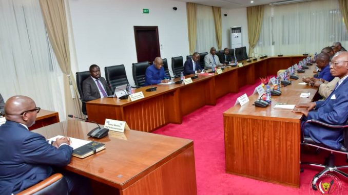 Cette séance de travail du Chef du Gouvernement avec les délégués syndicaux du Réseau des associations des professeurs des universités et instituts supérieurs de la RDC « Rapuico » en sigle et ceux de l’Association des professeurs de l’Université de Kinshasa (Apukin), était une occasion de passer en revue les réclamations des professeurs, liées notamment à l’application de l’accord de Bibwa par le Gouvernement. Des solutions idoines ont été proposées pour mettre fin à ce mouvement de grève.