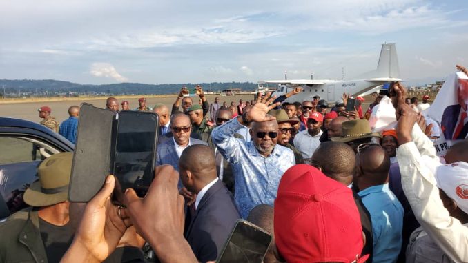 A l’aéroport de Kavumu, situé à 30 Km du centre-ville de Bukavu, Vital Kamerhe a été accueilli par le gouverneur du Sud-Kivu, Théo Ngwabidje Kasi, des membres du gouvernement provincial ainsi qu’une foule des membres de son parti politique, Union pour la nation congolaise (UNC).