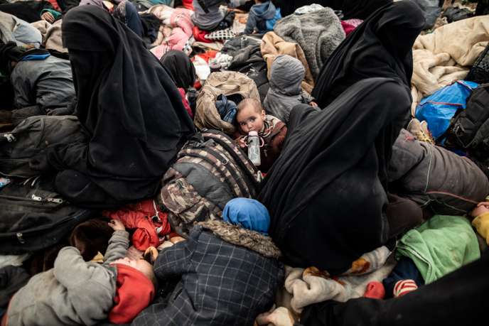 Syrie, Camp de transit d’Al Hawl, saturé par des civils ayant fui Baghouz, la dernière poche encore tenue par Daesh. Les civils attendent d’être dispatchés dans des tentes ou dans d’autres camps. Les grandes tentes qui accueillent les déplacés sont pleine à craquer.